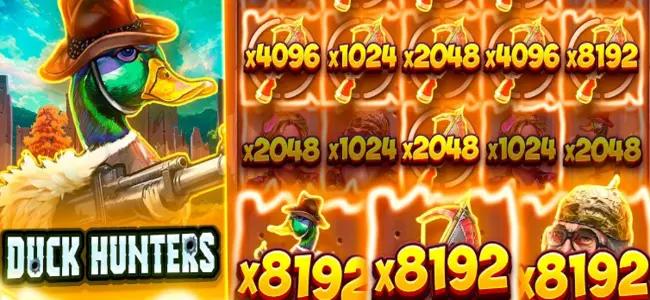 Duck Hunters это слот от No Limit City с темой охоты на уток. Игра вышла недавно и сразу привлекла внимание яркой графикой и огромными выигрышами. Максимальный множитель достигает 18000 раз ставки. Слот имеет 5 барабанов, 4 ряда и 1024 линии выплат.