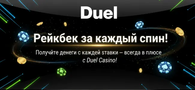 Как это работает? Вы играете в слот с RTP 96%, то есть дистанция будет забирать 4% от ставок. Но Дуэль казино будет возвращать половину в рейкбека, который сразу начисляется пользователю. Во- первых, вы будто играете с более плюсовым математическим ожиданием, а во вторых, чем дольше и активней ваша игра, тем больше рейкбек получается.