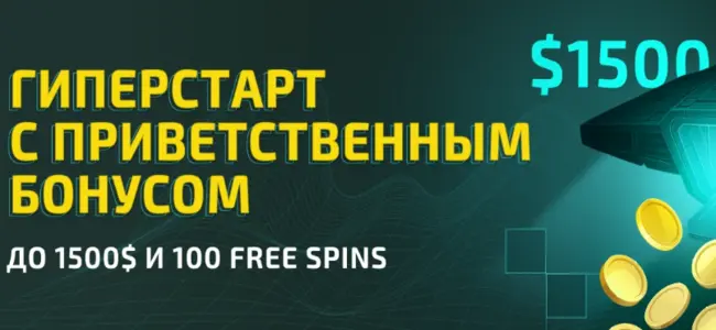 - Приветственный пакет: до 1500 USD и 100 бесплатных вращений на первые три депозита